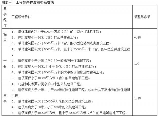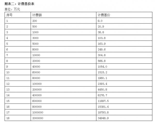 注:計費基價詳見附表二《計費基價表》,計費額處于兩個數(shù)值區(qū)間的,采用內(nèi)插法確定設(shè)計計費基價;工程復(fù)雜程度調(diào)整系數(shù)詳見附表三《工程復(fù)雜程度調(diào)整系數(shù)表》