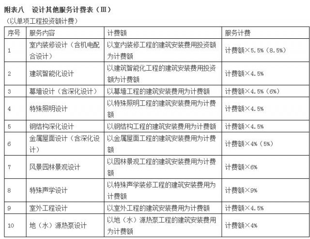 3、建筑設(shè)計服務(wù)計費